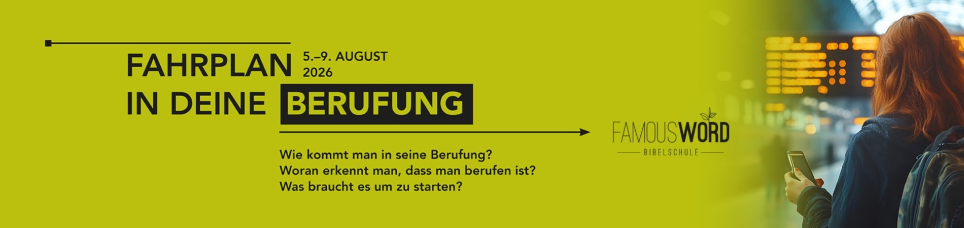 Unter dem Motto „Fahrplan in DEINE Berufung“ erwartet dich ein vielseitiges Programm.
