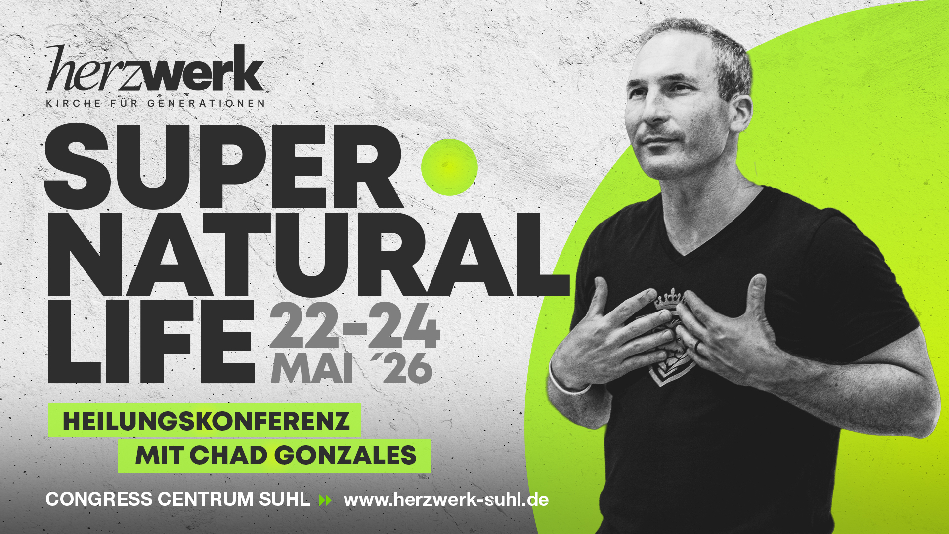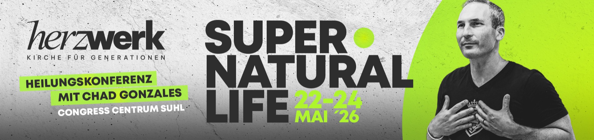Nach der erfolgreichen Heilungskonferenz 2024 & 2025, kommt Chad Gonzales auch in 2026 nach Deutschland! Der Dienst von Chad Gonzales ist für seine außergewöhnliche Zeichen und Wunder weltweit bekannt: Taube hören, Blinde sehen, Gliedmassen wachsen nach und Tumore lösen sich auf. Du brauchst ein Wunder oder willst lernen wie man in göttlicher Heilung lebt? Dann bist du bei der Heilungskonferenz richtig.