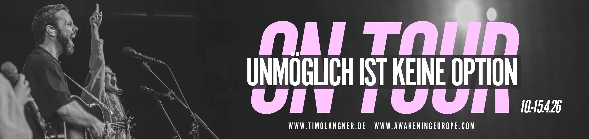 Gemeinsam mit Awakening Europe ist TIMO LANGNER im April 2026 auf Deutschland Tour. Brennt dein Herz dafür, Gott anzubeten und bist du leidenschaftlich dafür, Ihn verherrlicht zu sehen? Dann komm zu einer der Worshipnights im April 2026. Mit dem Lied „Ein Gott der das Meer teilt“ hat Timo Langner im Sommer 2022 ein Lied veröffentlicht, das in aller Klarheit proklamiert, das für unseren Gott „Unmöglich keine Option ist“! An diesem besonderen Abend richten wir uns gemeinsam auf Jesus aus, beten Ihn hingegeben in Geist und Wahrheit an, und sind voller Glauben, dass er in unserer Mitte übernatürlich wirken wird.