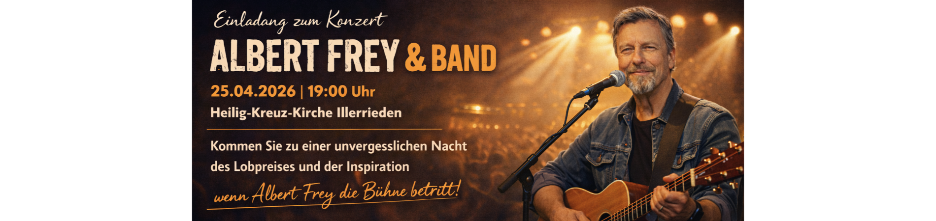 Seit 1982 engagiert sich Albert Frey als Songwriter, Produzent und Lobpreisleiter in der christlichen Musikarbeit und hat in den vergangenen Jahren mehr als 120 Kompositionen veröffentlicht und auf über 50 CD-Produktionen mitgewirkt – unter anderem für den Hänssler-Verlag und bei Gerth Medien. Seine Lieder, CDs, Seminare und Konzerte prägen eine neue deutschsprachige Lobpreiskultur in vielen Gruppen und Gemeinden. Es geht ihm um eine ehrliche Begegnung mit Gott und um Anbetung „Im Geist und in der Wahrheit".