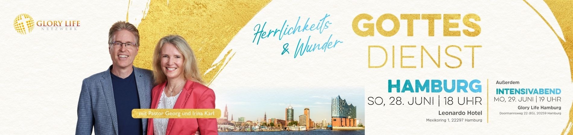 Die Pastoren Georg & Irina Karl sind Leiter des Glory Life Netzwerkes und von Glory Harvest International und erleben seit einigen Jahren in ihren Versammlungen einen permanent offenen Himmel, unter dem spektakuläre Wunder aller Art in großer Zahl die Verkündigung des Wortes Gottes begleiten, sodass Menschen dauerhaft geistlich, seelisch und körperlich verwandelt werden und ihren Platz als Söhne und Töchter Gottes einnehmen. Pastor Georg ist außerdem Autor von „Reise in die Herrlichkeit“ und drei weiteren weit verbreiteten Büchern.