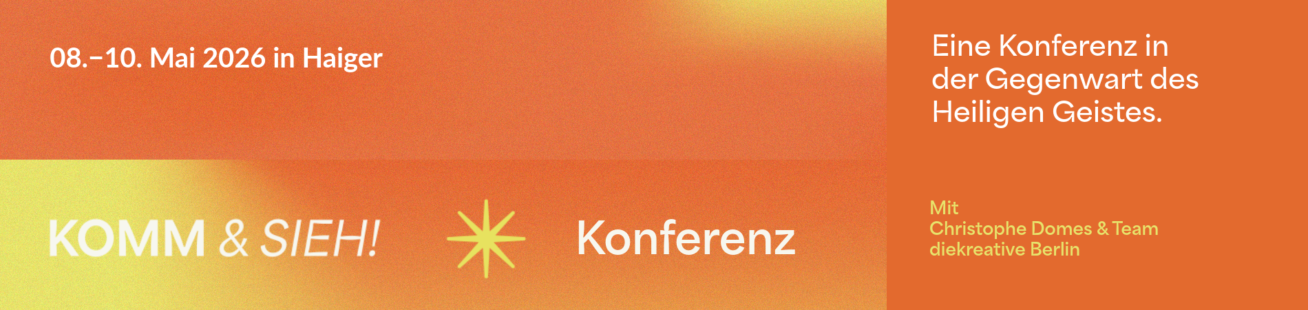 Wir wollen Jesus groß machen und wünschen uns dafür mehr Kraft des Heiligen Geistes, um unseren Auftrag zu leben und Menschen vollmächtig zu dienen: KOMM UND SIEH! Erlebe Gottes Gegenwart. Komm in Anbetung näher an sein Herz. Streck dich aus nach seinen Gaben. Lass seine Herrlichkeit dein Leben heiligen.