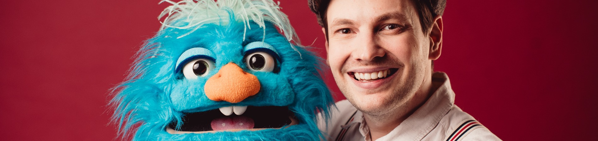 Sebastian Rochlitzer und sein blauer, sockenliebender Freund Ulfie wollen Kinder und Familien für Jesus begeistern.