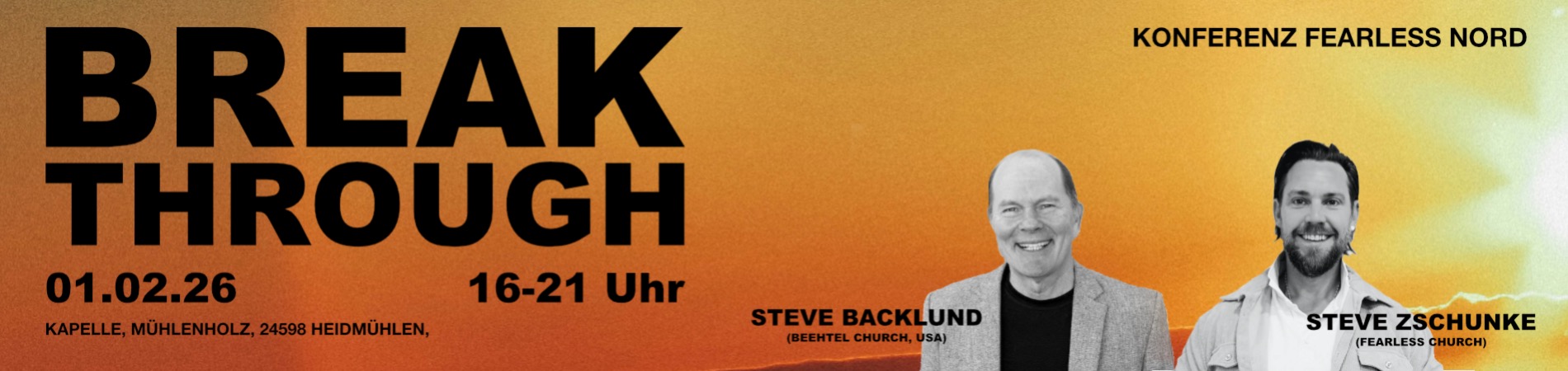 Gemeinsam mit Steve Zschunke (Fearless Church) und Steve Backlund (Bethel Church, USA) möchten wir eine Atmosphäre schaffen, in der Identität gestärkt, Glaube erneuert und neue Perspektiven freigesetzt werden.